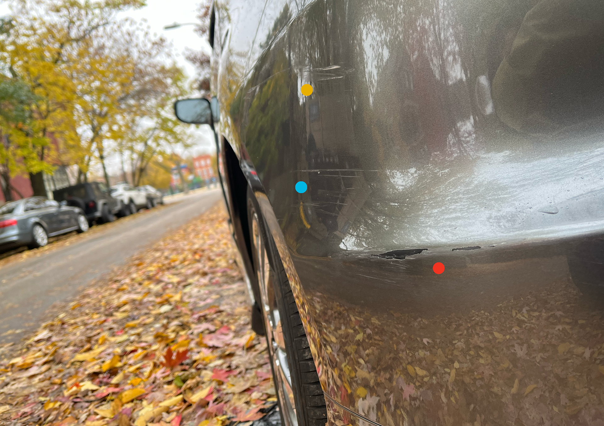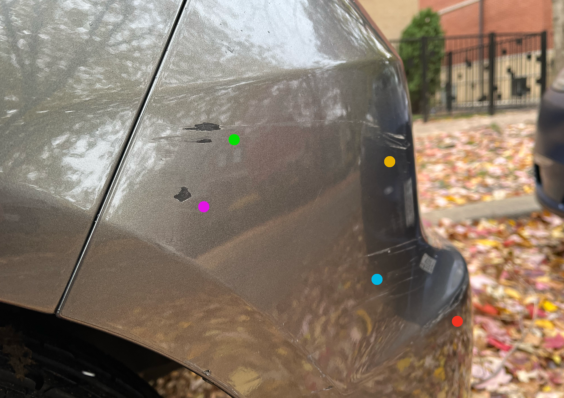 The car has a few scratches on the driver's side back corner