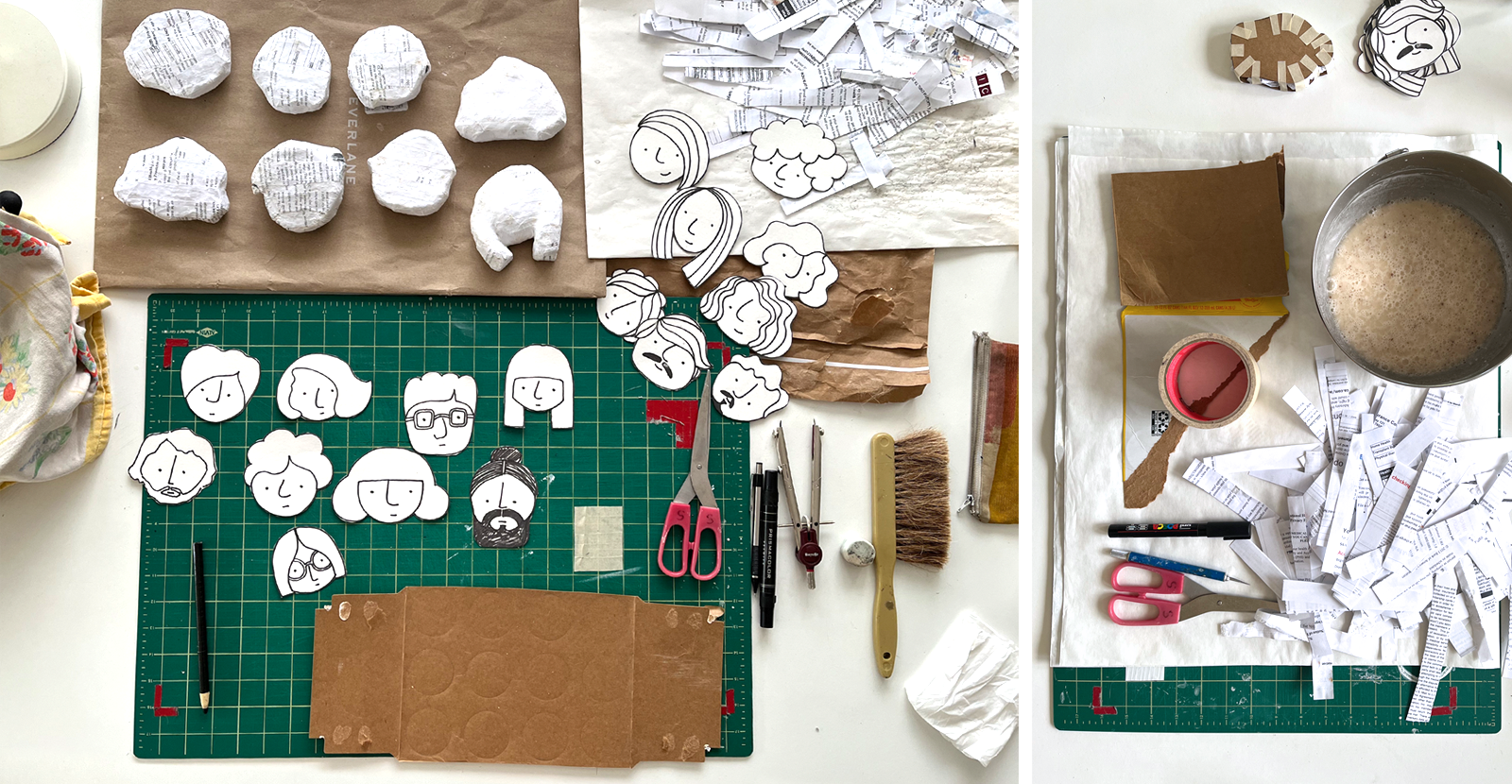 I make paper mâché pieces to reuse paper from everyday mail and to safely get rid of private documents. I get a lot of inspiration from trash and the process of upcycling.