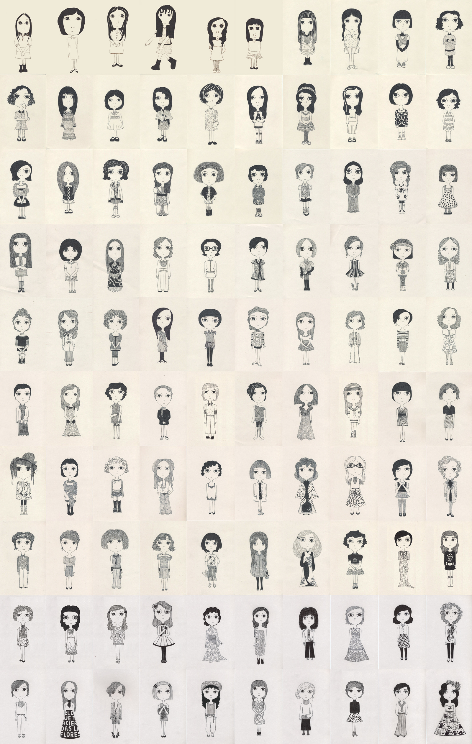 A collection of 100 dolls, inspired in paper dolls, barbies, fashion and hairstyles.