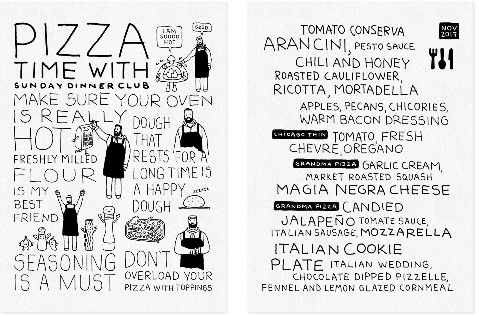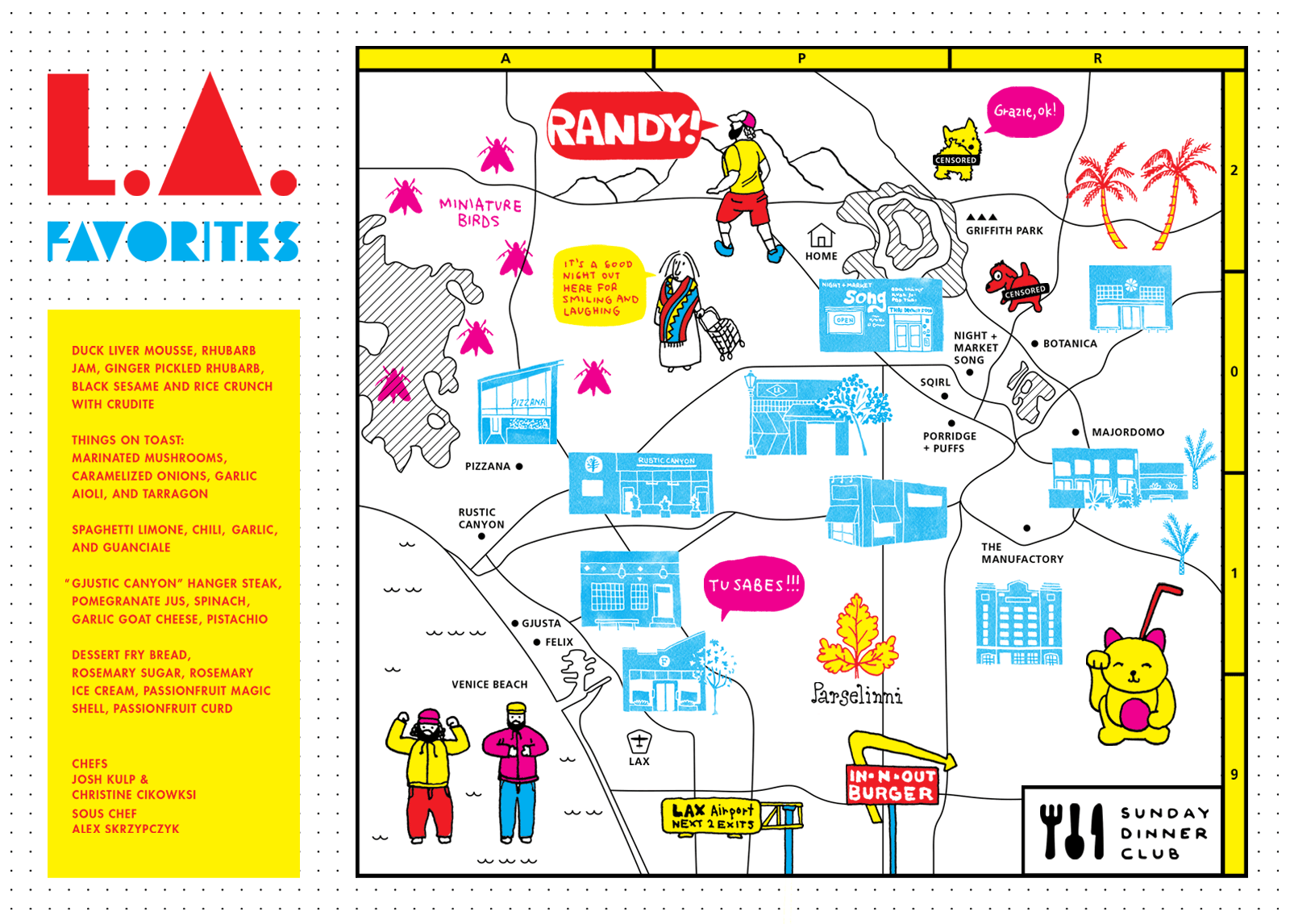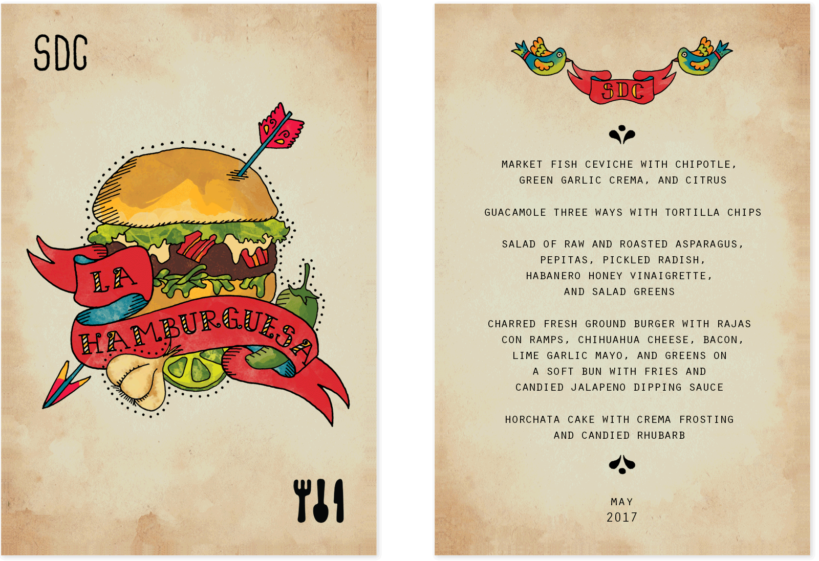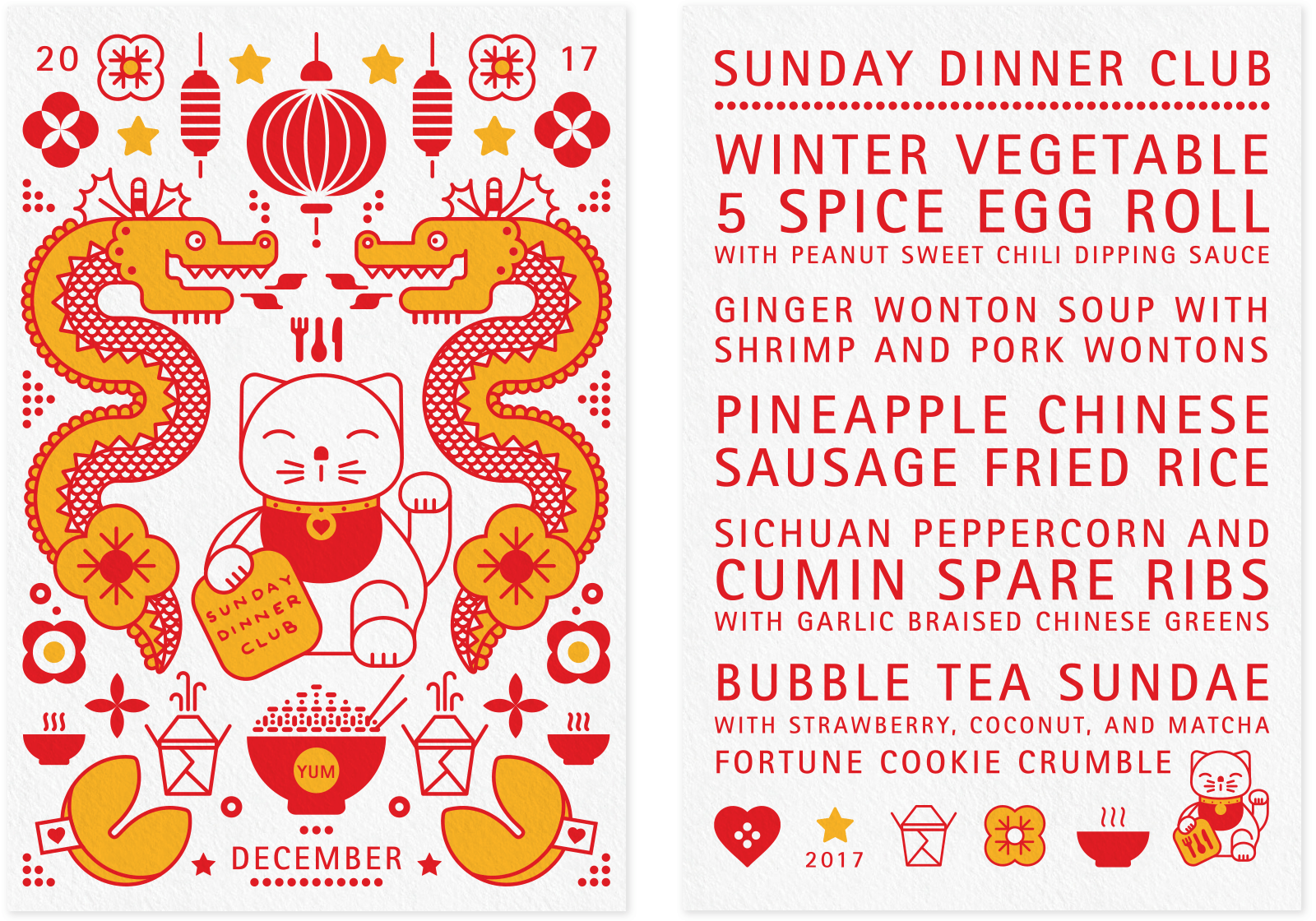 Sunday Dinner Club is a supper club that features monthly rotating menus with themes that vary widely, from cuisine inspired by different countries to dishes based on the works of renowned chefs. Below are some examples of their menus.