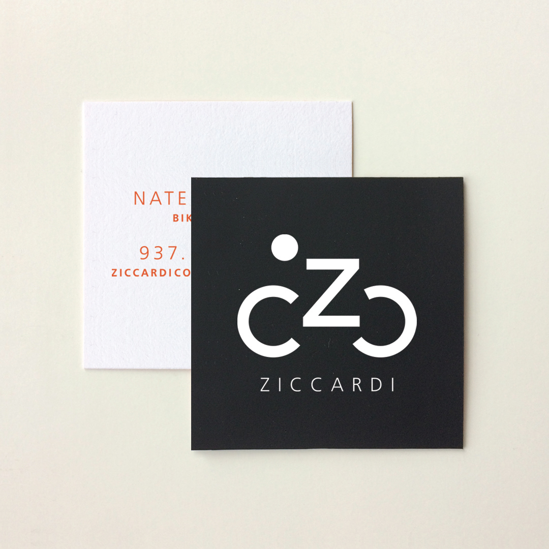Ziccardi Courier is a bicycle delivery service in Columbus Ohio. Their logo is a cyclist created from letters of the Ziccardi last name.